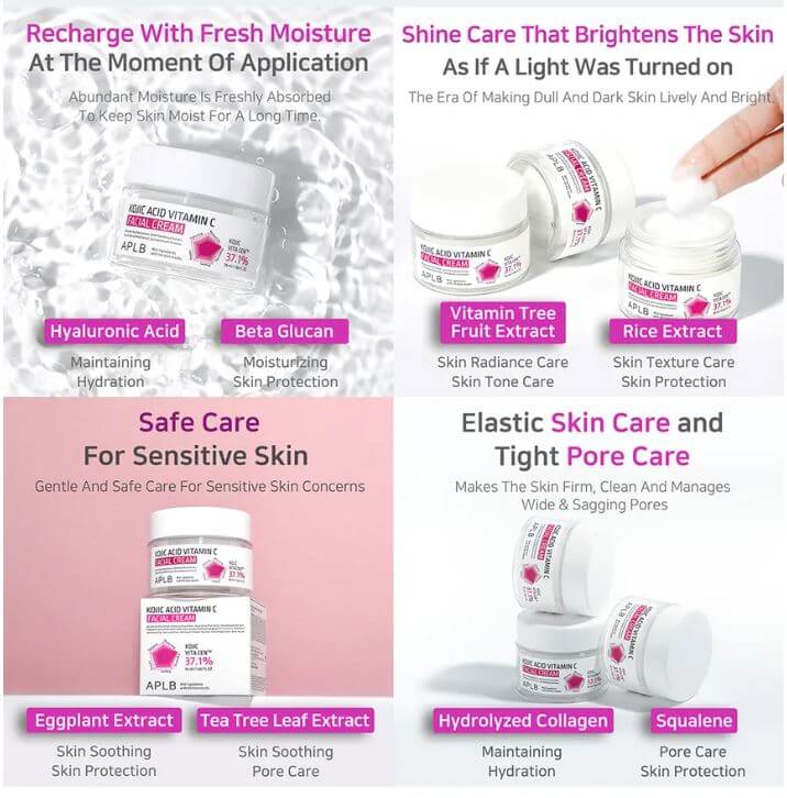 Water, Centella Asiatica Leaf Water, Glycerin, Cetyl Ethylhexanoate, Butylene Glycol, Polyglyceryl-3 Methylglucose Distearate, Kojic Acid Ascorbic Acid, Sodium Hyaluronate, Stearic Acid, Sodium Polyacryloyldimethyl Taurate, Hydrogenated Polydecene, Trideceth-10, Silica, Glyceryl Stearate, Beeswax, Butyrospermum Parkii (Shea) Butter, Macadamia Ternifolia Seed Oil, Betaine, Trehalose, Citric Acid, Nelumbo Nucifera Extract, Artemisia Annua Extract, Oryza Sativa (Rice) Extract, Saccharomyces Ferment, Solanum Melongena (Eggplant) Fruit Extract, Melaleuca Alternifolia (Tea Tree) Leaf Extract, Hydrolyzed Collagen, Squalane, Beta-Glucan, Dipropylene Glycol, Hippophae Rhamnoides Fruit Extract, Madecassic Acid, Asiaticoside, Asiatic Acid, Disodium EDTA, Propanediol, Hydroxyacetophenone, 1,2-Hexanediol, Ethylhexylglycerin, Dipotassium Glycyrrhizate