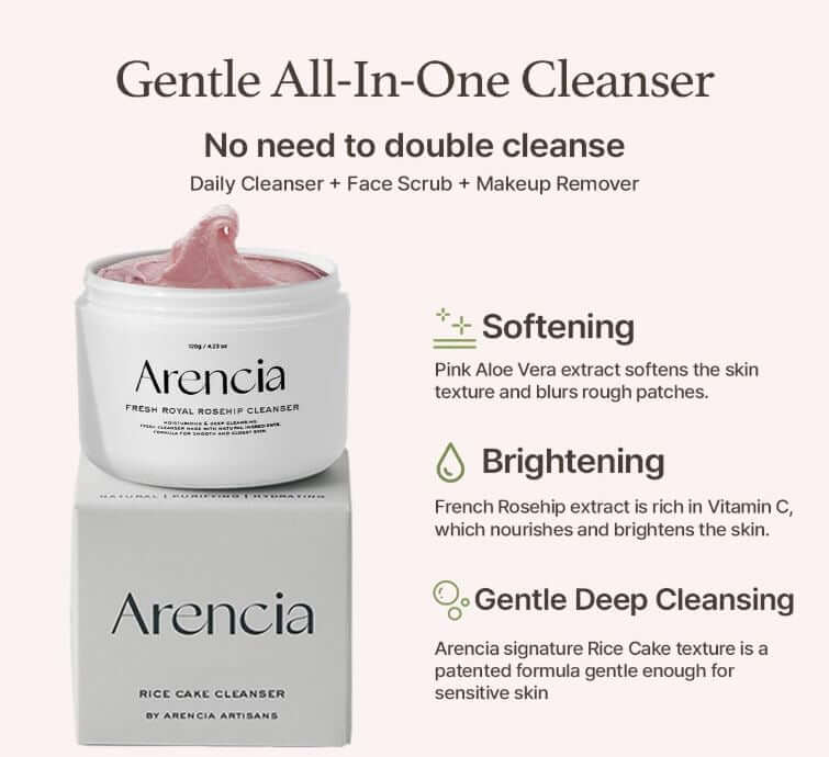 Arencia is a South Korean skincare brand focused on creating natural, sustainable products with a focus on fresh, plant-based ingredients. The brand name translates to "Artisan gift" and emphasizes a holistic approach to healthy skin through clean beauty practices.