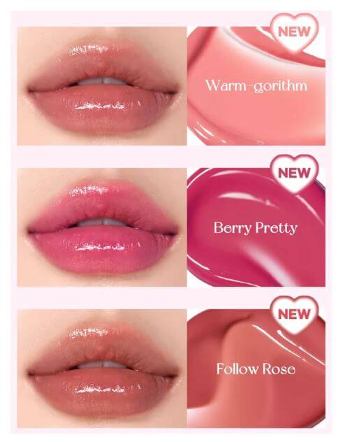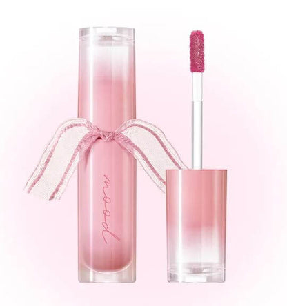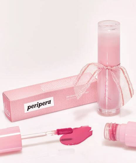 PERIPERA's Ink Mood Glowy Tint: Peritage Collection. This glossy lip tint offers a glass-like finish, enhancing your lips with a plumped and moisturized look. With its Triple Layer Glow Mechanism, it provides vivid color payoff, layering easily for your desired intensity. New limited edition packaging and shades for the Peritage collection, adding a touch of radiance to your makeup routine.